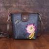 Vintage Design Lotusprägung Umhängetaschen Echtes Leder Crossbody-Tasche für Damen Damen Geldbörse GZW