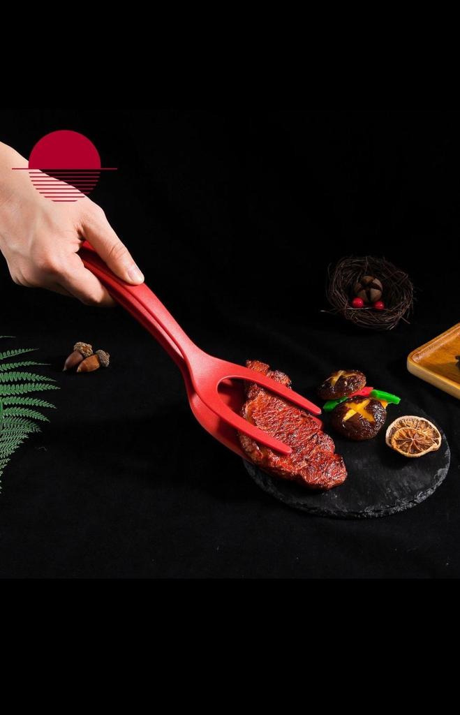 Multifunktionale 2-in-1-Silikon-Spatelgriff, Flip-Zange, hitzebeständig, für Zuhause, Küche, Kochen, Steak, Pfannkuchen, Eierspatel-Clip