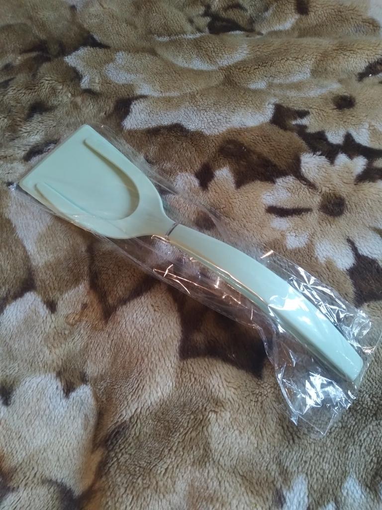 Leider ist der Spatel nicht aus Silikon! Gewöhnlicher Kunststoff . Aber ein sehr funktionales Gerät. Nichts - weder die Koteletts noch der Fisch fliegen auf den Boden. Danke schön. Allerdings sind die Kosten, wie bei Kunststoff, mindestens doppelt so hoch!