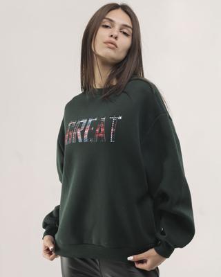 Women's Fashionable Stylish Sweatshirt Emerald Green Color Block Relaxed Fit Raglan Sleeve Thick Knitted Sweatshirt