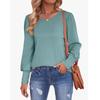 Damen Langarm T-Shirts Rundhals Puffärmel Chiffon Pullover Shirts Einfarbig Bluse Tops