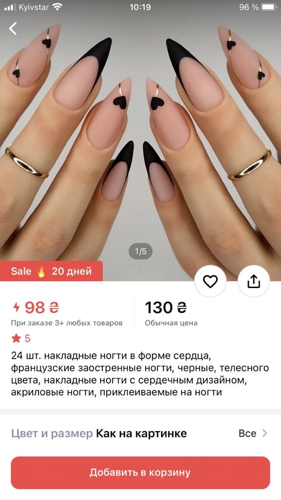 24 Stück Herz-Aufdrücknägel, französische spitze Spitzen, schwarze, hautfarbene künstliche Nägel mit Herz-Design, Acrylnägel, Aufklebenägel
