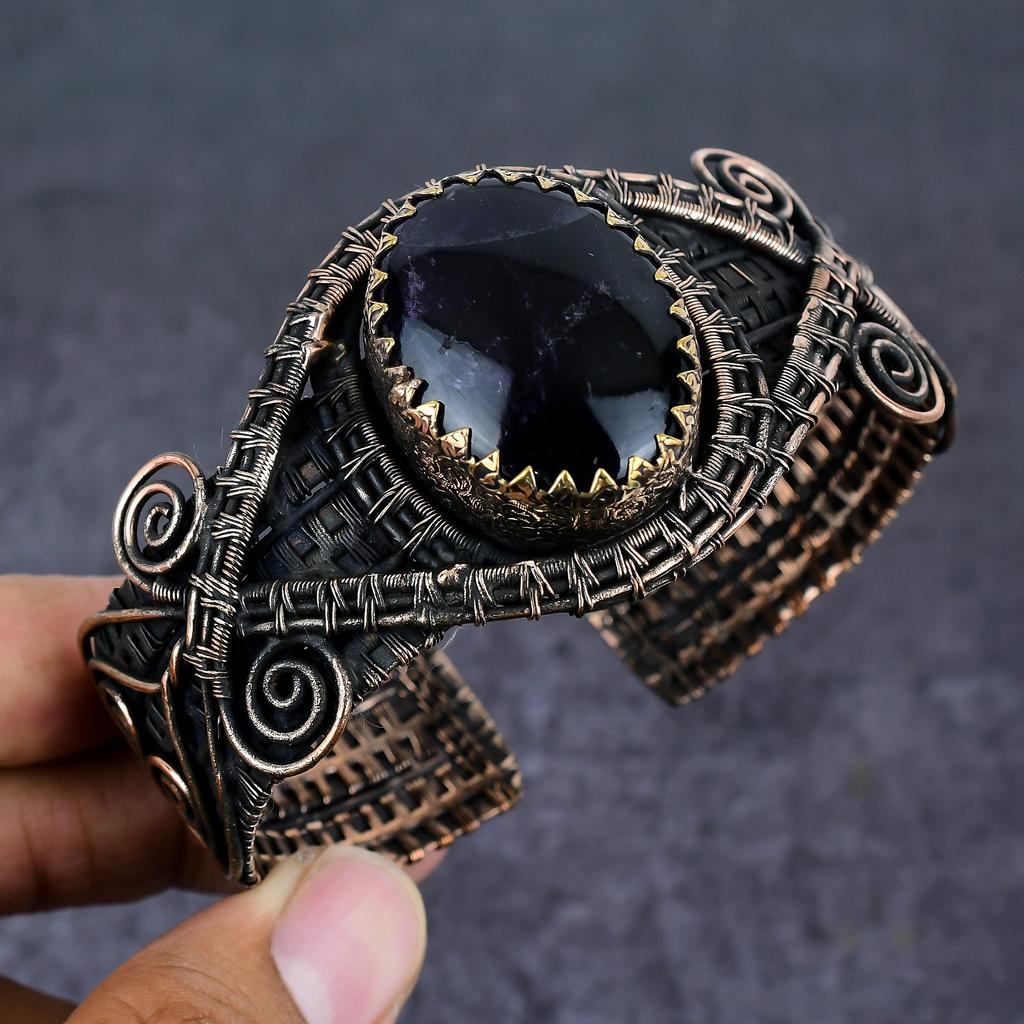 Salbei Amethyst Edelstein handgemachte Kupfer Draht wickeln Manschette Armreif verstellbar c3N93