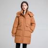 Damen Winter Lange Warme Jacke Flauschige Kapuze Lange Einfarbige Jacke Lässige Schneejacke