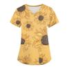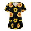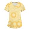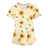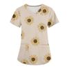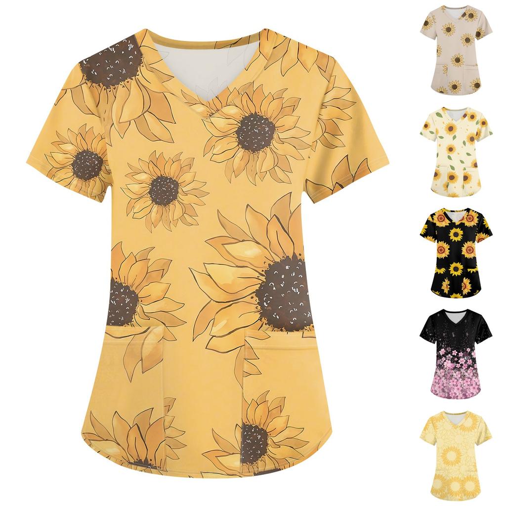 Modische Arbeitskleidung für Damen mit V-Ausschnitt, kurzen Ärmeln und bedruckten Taschen