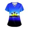 Damen Hawaii Bedruckte Uniform Arbeitsuniform V-Ausschnitt Tasche Schutz Arbeitsuniform