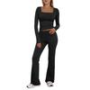 Damen Sommer Zweiteiliges Outfit Oberteil Lange Hose Sets Lässiger Trainingsanzug Langarm Shorts Anzug