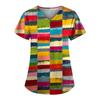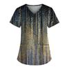 Plus Size niedlich bedruckte Peeling-Arbeitsuniform-Oberteile für Damen, V-Ausschnitt, kurze Ärmel, lustige T-Shirts, Arbeitskleidung, T-Shirt mit Taschen
