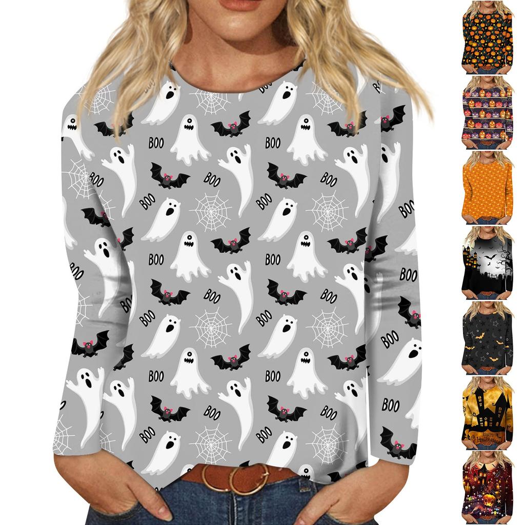 Damenmode Lässig Langarm Gestreift Halloween Bedruckt Rundhals Oberteil