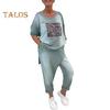 Dieser vielseitige Damenanzug ist ein Must-have für Ihre Garderobe. Die lockere Passform bietet Stil und Komfort und schmeichelt Ihrer Figur mühelos. Das Oberteil mit Leopardenmuster und Seitenschlitzen passt perfekt zur Hose mit elastischem Bund und eignet sich sowohl für Freizeitausflüge als auch für Outdoor-Aktivitäten..