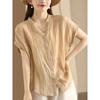 Sommer Retro Plissee Blusen & Hemden Kurzarm Damen Shirt V-Ausschnitt Strickjacke