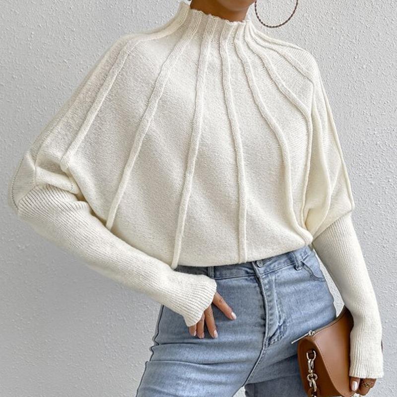 Halbhoher Strickpullover mit hohem Halsausschnitt, einfarbiger Pullover mit Fledermausärmeln, äußerer Pull-Pullover für Damen, modische warme Strickwaren, Pendeln, Herbst und Winter