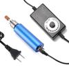 Blauer elektrischer Mini-Schleifapparat aus Metall mit britischem und amerikanischem Stecker, 12 V, 2 A, stufenlos einstellbare Geschwindigkeit, kleine handgeführte elektrische Bohrmaschine.