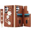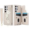 Neue Lederhülle mit 3D-Blumenmuster, geeignet für S24ULTRA, Handschlaufe, Karteneinschub, S23FE-Halterung, Anti-Drop-A55-Schutz