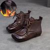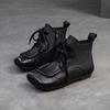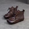 Johnature Kurze Stiefel aus echtem Leder im Retro-Stil mit bequemer, quadratischer Zehenpartie und Schnürung für Damen