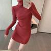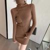 HELIAR Frauen Herbst Rollkragen Verdicken Warme Bodycon Kleid Langarm Stricken Solide Büro Pullover Kleid Für Frauen 2024 Winter