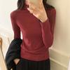Geripptes Halbrollkragen-Unterhemd für Damen, Frühherbst Neu, Langarm-T-Shirt, Elastisch, Figurbetont, Weich, Wachsartig, Innentop