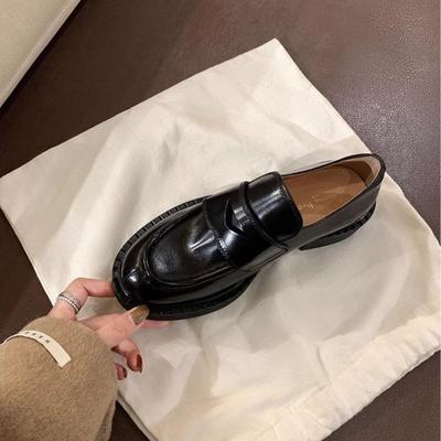 Schaffell Leder Rundkopf Goldschnalle Ein Pedal Dicker Absatz Loafer Kleine Lederschuhe Damen Herbst Plateau Einzelschuhe