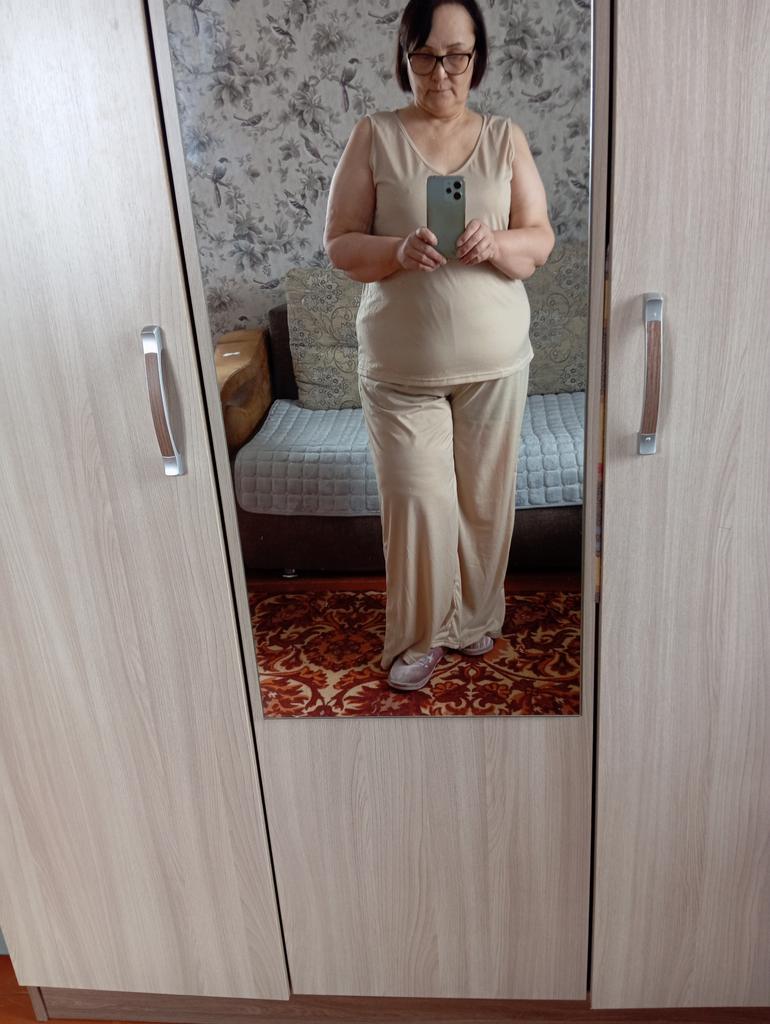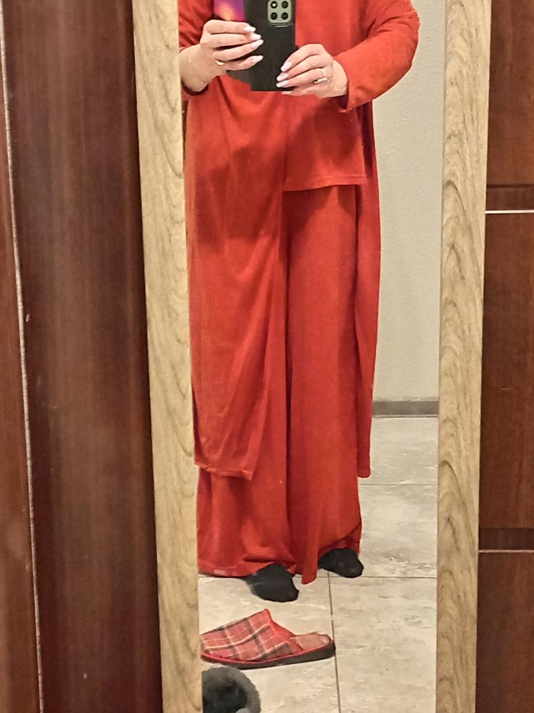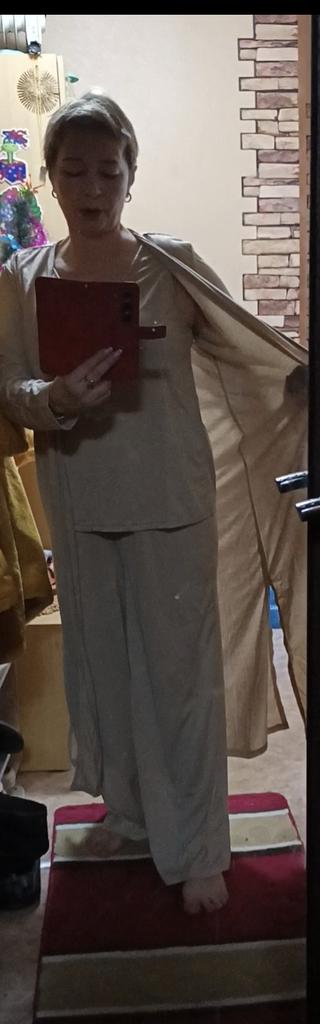 Strick-Pyjama, und zwar aus Strickware von sehr geringer Qualität. Der Schnitt der Hose ist einfach schrecklich, erinnert an Arbeitskleidung für den Garten. Für diesen Preis ist das inakzeptabel und sehr enttäuschend.