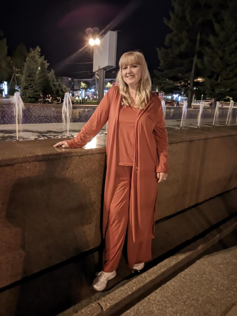 Die Größe war etwas falsch, ich bin 52, ich hätte eine größere Größe nehmen sollen, vielleicht läuft sie beim Waschen ein...