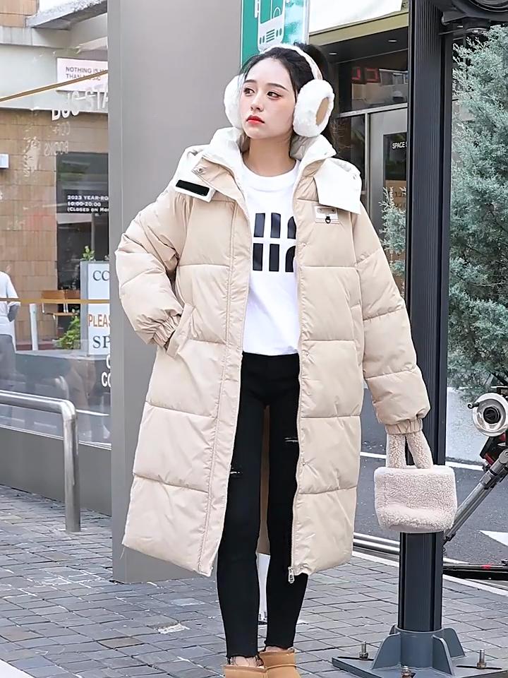Daunen-Baumwoll-gepolsterte Kleidung Damen Winterkleidung Mittel und lang Neue Kapuze Verdickte warme Außenhandel Baumwoll-gepolsterte Jacke