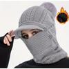 Mütze und Schal integriert Damen Herbst und Winter warme Strickmütze Radfahren Fleece-Überziehmütze winddicht Ohrenschutz Wollmütze