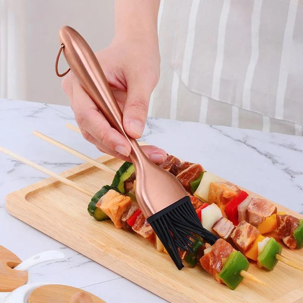 Edelstahl Grillbürste mit titaniertem Griff, abnehmbare Silikonölbürste, hängende Edelstahl Grillbürste