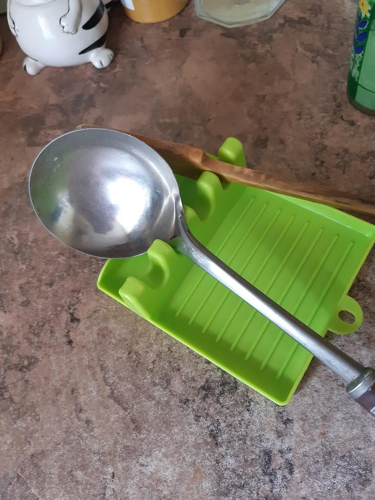 Sehr praktisch, um den Löffel abzulegen, nichts tropft und der Tisch bleibt sauber, kaufen Sie es.
