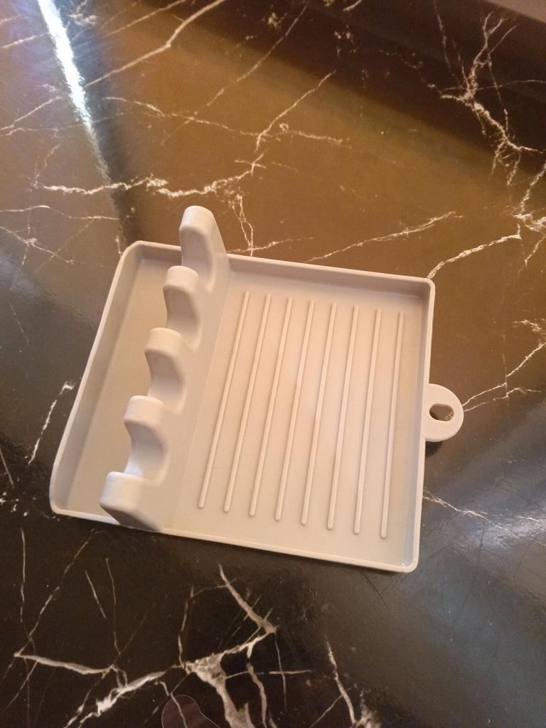 Löffelhalter aus Kunststoff, stabil, aber rutscht auf der Oberfläche. Im Allgemeinen bequem, für 4 Griwna gewonnen, dank Ihnen und dem Verkäufer