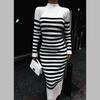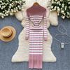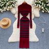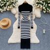 Pullover Kleider Frauen High Neck Herbst 2024 Sexy Slim Fit Farbe Blockiert Gestreiften Gestrickte Bodycon Kleid Streetwear Chic Kleider