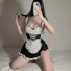 Süßes Diener-Dienstmädchen-Kleid mit Rüschen, sexy Dessous, Kawaii-Cosplay-Kostüme, tiefer V-Ausschnitt, Tempatation, Frauen, Anime, mit Schürzenverband