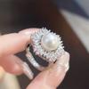 Einfache Und Exquisite Promi Perle Blume Ring Weibliche Öffnung Rosa Zirkon Elegante Temperament Süße Geschenk