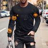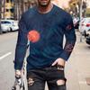Herren Langarm T-Shirt Frühling und Herbst Lockerer Rundhals-Kapuzenpullover 3D-Druck Bedrucktes Langarm-Oberteil