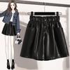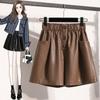 DIMANAF 2024 Übergröße Herbst Winter Shorts Damen Lässig Uni Neu PU Leder Locker Weites Bein Hosen Hohe Taille Kurze Hosen