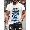 Herren T-Shirt mit Cartoon-Muster und Katzen-Print, Sommer, lässig, kurzärmelig, Street-Stil, Rundhalsausschnitt, kurzärmeliges Oberteil, übergroße Kleidung