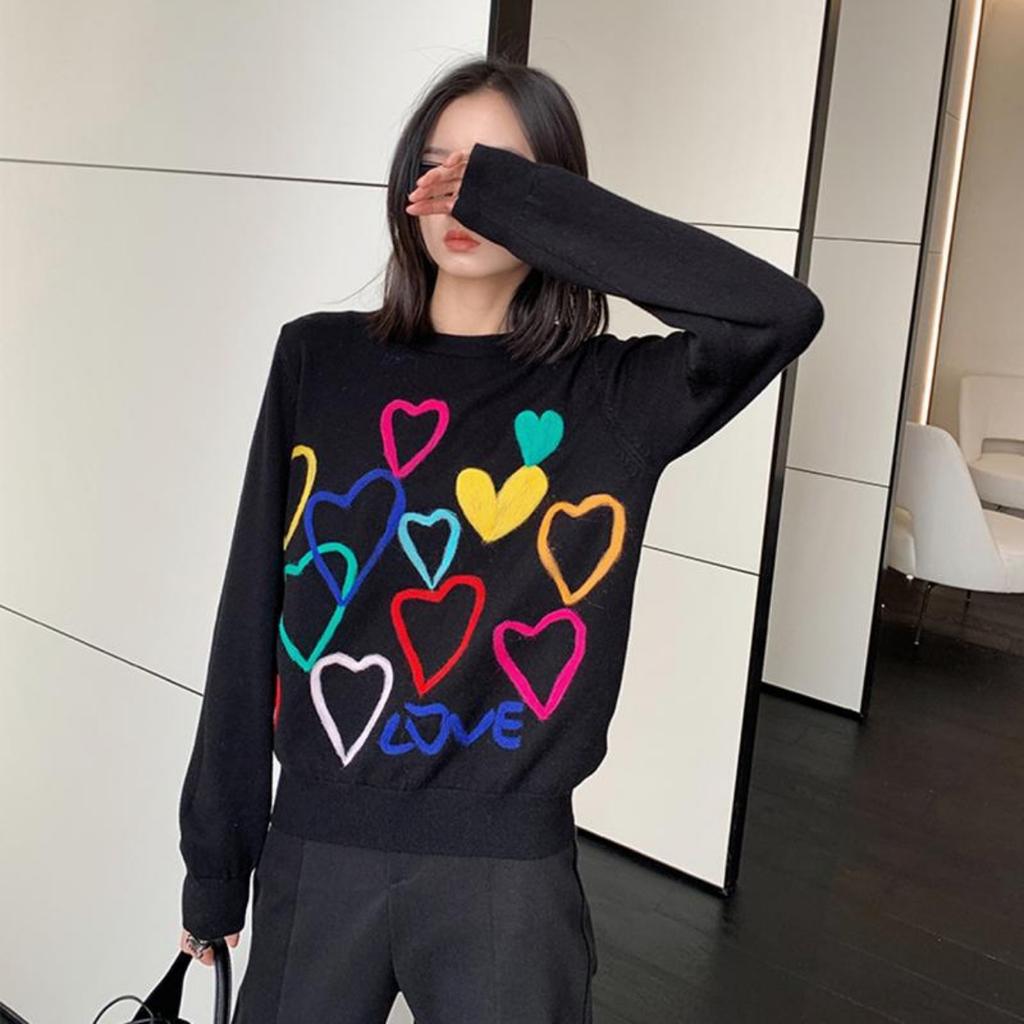 Frühling Frauen Schöne Pullover Oansatz Bunte Candy Farbe Herz Stickerei Strickwaren Schlank Alle-Match-Pullover C-195