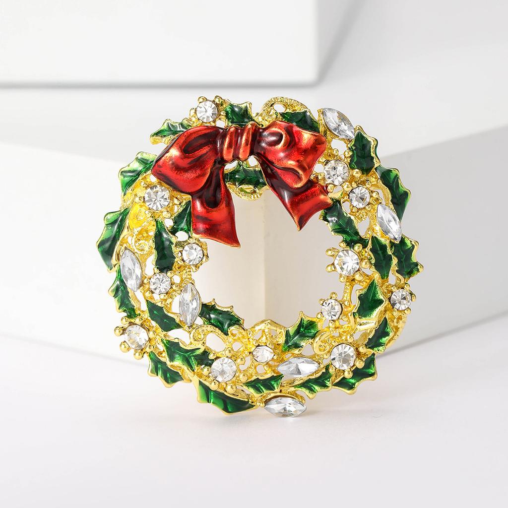 Vielseitige Weihnachtsbrosche, Hochwertige Legierung Öltropfen Diamant Schleife Kranz Korsage Kleidung Kragen Anstecknadel
