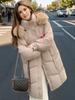YJKDYK 2024 Winter Damenjacke Weiblicher Pelzkragen Warme Lange Parkas Mäntel Damen Hoher Kragen Verdicken Warme Baumwolljacke