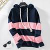 European and American hooded contrast color pullover sweater tops for women autumn and winter loose casual versatile women's sweater tops