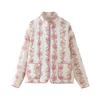 Damen Baumwollmantel Frühling 2024 Neue Mode Langarm Floral Gepolsterte Jacke für Frauen Casual Chic Damenmantel
