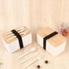 2 Stück 1200 ml Bento-Boxen mit Riemen, doppelschichtig, integriertes Geschirr, japanischer Stil, tragbar, auslaufsicher, Mittagessen