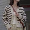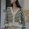 QICED Lose Beiläufige Gestreifte Strickjacke Frauen Herbst und Winter Faul Kurzen Pullover Mantel Strickjacke