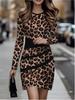 Herbst Neue Langarm Zebra-Print Split Sexy Kleid Frauen Rundhals Slim Fit Vintage Party Club Casual Kleider Frauen Elegante hohe Taille Kleid 25240