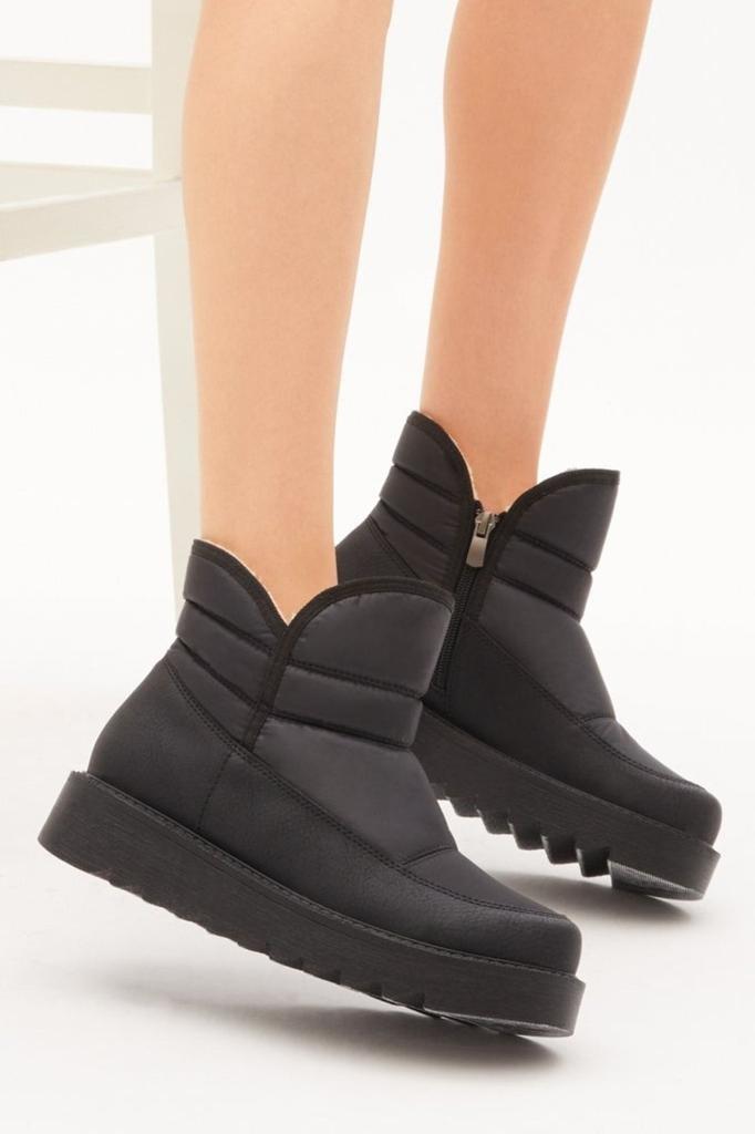 Women Modern Stylish Fashion Boots Faux Leather Fur Lined Non-Slip Sole Short Model Snow Boots