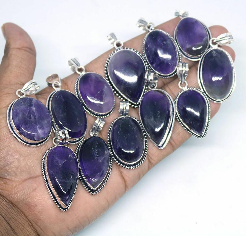 Amethyst Gemstone 925 Sterling Silver Plated Handmade 5 PCs Fancy Pendants Jewelry SEN-368