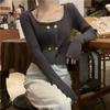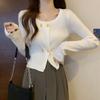 QICED Retro Square Collar Soft Knit Cardigan Women's Autumn and Winter Design Sense Niche All-match Short Sweater Top