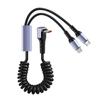 Erleben Sie den Komfort des gleichzeitigen Ladens mit unserem 2-in-1 Federladekabel mit Micro-USB- und Typ-C-Anschluss, perfekt zum Aufladen Ihrer Geräte unterwegs.