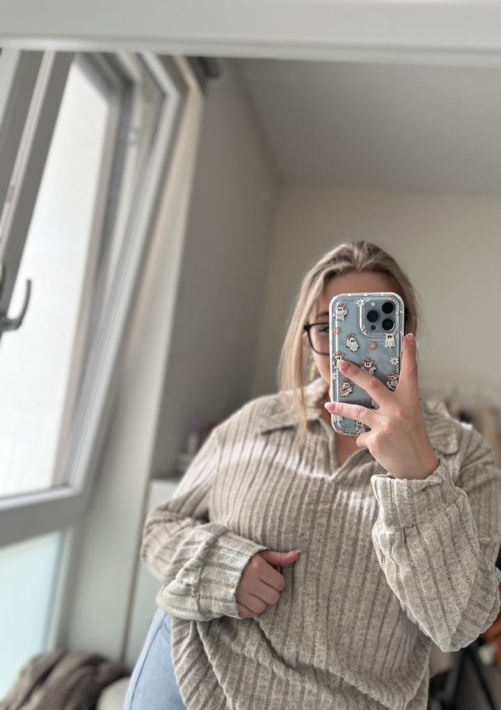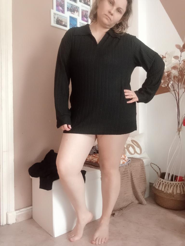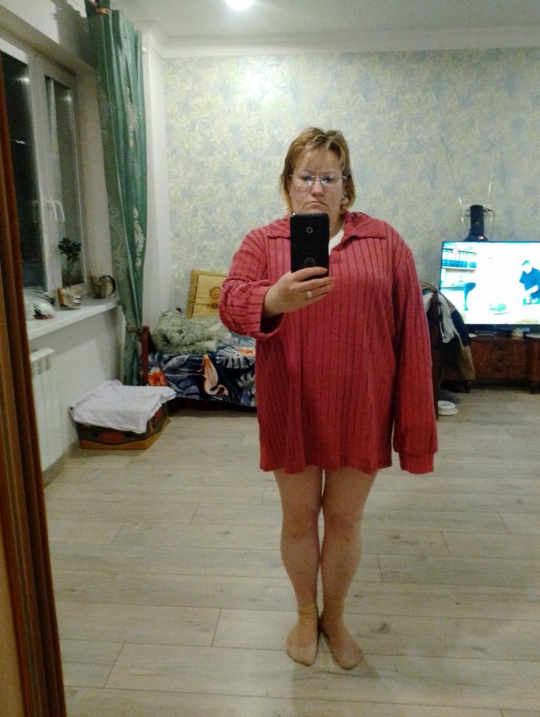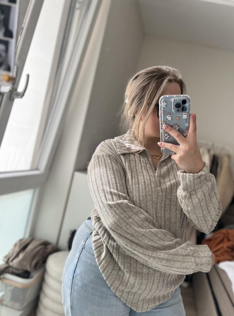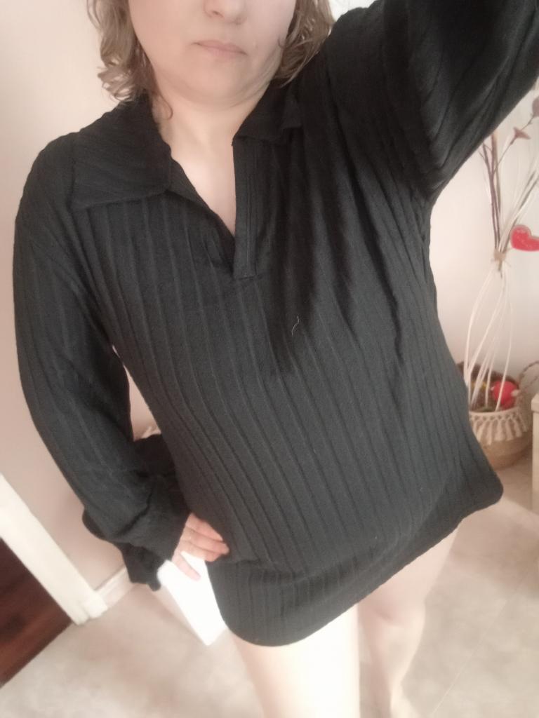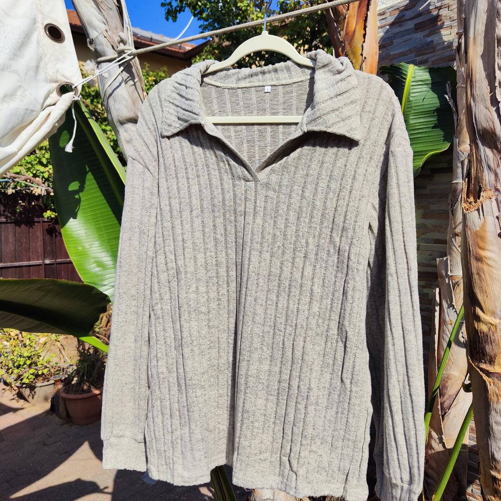 Strick-Sweatshirt mit umklappbarem Kragen für Damen Übergrößen Das Hemd ist von sehr hoher Qualität! Sie ist sehr bequem am Körper, sitzt schön. Aus Polyesterstoff Es gibt einen faltbaren Kragen und lange Ärmel mit Manschetten auch am Saum des Hemdes.. Hochwertiges T-Shirt, sehr empfehlenswert zu kaufen! Das Shirt kam schnell und sicher bei mir an 📦