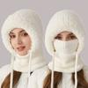 Damen Winter Gefütterte und Verdickte Gestrickte Gesicht verdeckende Einteilige Mütze Einfarbig Bequeme Warme Mütze