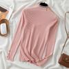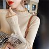 Koreanischer Mesh-Spleiß-Pullover Langarm Elastisch Weiße Oberteile Damen Herbst Winter Kleidung Slim Strick Weicher Pullover Knopf Halber Rollkragenpullover